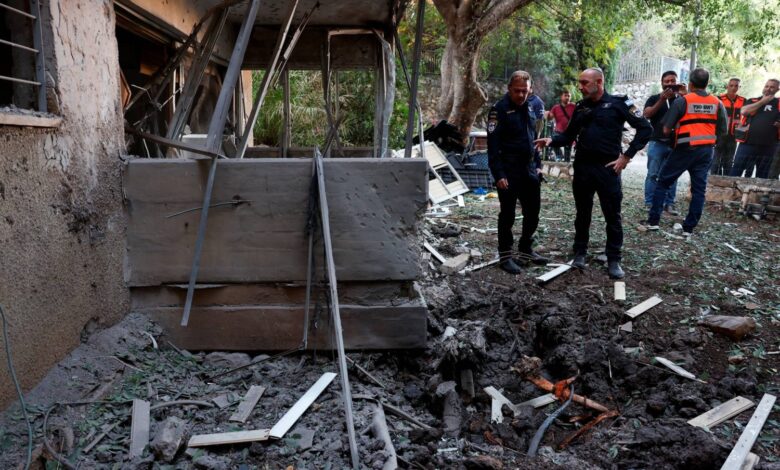 عناصر من الطوارئ يتفقدون الأضرار الناتجة عن صواريخ “حزب الله ” في كارمئيل بشمال إسرائيل ” رويترز”