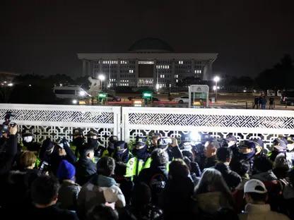 وأظهر بث حي للتلفزيون، في وقت سابق، قوات مكلفة فيما يبدو بفرض الأحكام العرفية وهي تحاول دخول مبنى البرلمان، كما شوهد موظفو البرلمان وهم يحاولون صد الجنود برش مواد إطفاء الحرائق.