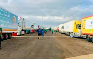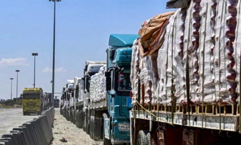 80 شاحنة مساعدات من دمياط امام معبر رفح للانطلاق الى قطاع غزة