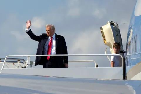 الرئيس دونالد ترامب لدى صعودة الطائرة AP Photo/Ben Curtis