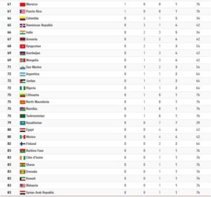 وفي ما يلي جدول الترتيب لأولمبياد “طوكيو 2020″، بعد منافسات يوم الجمعة 6 أغسطس 2021: