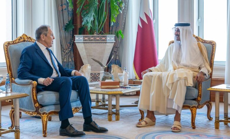 أمير قطر يبحث مع لافروف المستجدات الإقليمية والدولية