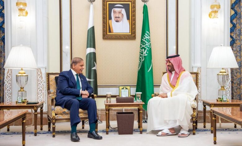 بحث ولي العهد السعودي، الأمير محمد بن سلمان، مع رئيس وزراء باكستان، محمد شهباز شريف، العلاقات التاريخية بين البلدين، وآفاق التعاون الثنائي، وسبل تطويره في مختلف المجالات.