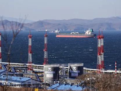 ناقلة نفط ترسو بالقرب من محطة كوزمينو في خليج ناخودكا في أقصى شرق روسيا. 4 ديسمبر 2022 – REUTERS