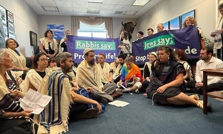 ونظم الحاخامات احتجاجا داخل مكتب زعيم الأغلبية في مجلس الشيوخ، السيناتور الجمهوري جون ثيون في العاصمة واشنطن.