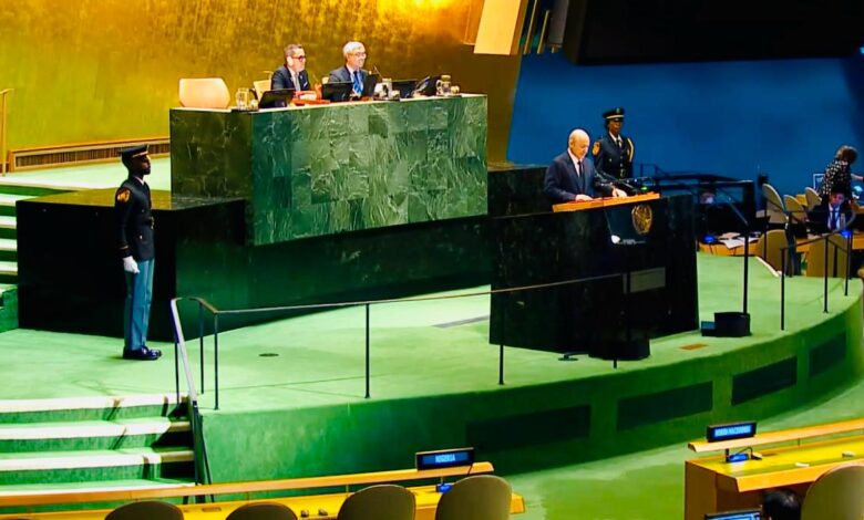 في خطابه أمام الجمعية العامة للأمم المتحدة الدورة 80 رئيس مجلس القيادة الرئاسي العليمي : أزمة اليمن اختبار لمصداقية النظام الدولي