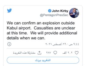 وقال وزير القوات المسلحة البريطاني: “ثمة معلومات مخابرات أكثر تأكيدا عن هجوم وشيك في مطار كابل”.