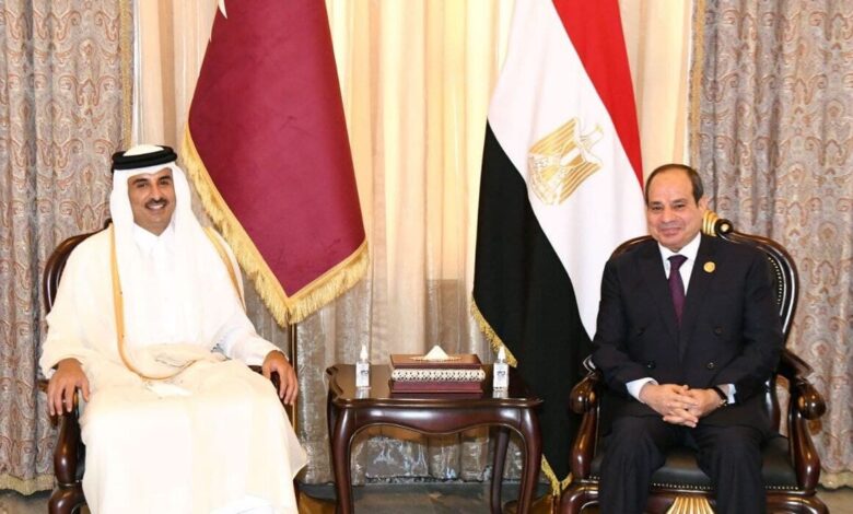 أكدت القاهرة أن الرئيس المصري عبد الفتاح السيسي بحث مع أمير قطر تميم بن حمد بن خليفة آل ثاني خلال اجتماع جرى بينهما في بغداد مساعي استئناف التعاون على النطاق الكامل بين بلديهما.