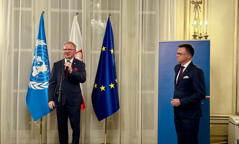 في حفل استقبل نظمته بعثة بولندا لدى الأمم المتحدة يسعدنا دائمًا اللقاء، ولكن ما يزيده تميزًا هو وجود سبب وجيه. وسبب تواجدنا هنا الليلة هو وقوفنا هنا. ضيف الشرف، رئيس مجلس النواب البولندي، هو أيضًا مرشحنا المعتمد لمنصب مفوض الأمم المتحدة السامي لشؤون اللاجئين. قررت بولندا ترشيح مرشحها لهذا المنصب، آخذةً في الاعتبار القصة المهمة واللافتة لاستضافة بلدي للتدفق المفاجئ لأكثر من مليون لاجئ من منطقة النزاع في أوكرانيا. في الواقع، التقينا بأكثر من 120 جنسية على الحدود، مستائين من كونهم من منطقة الحرب في أوكرانيا. لقد كانت هذه في الواقع قصة نجاح إيجابية وناجحة لشمال بولندا في استيعاب هؤلاء الأشخاص، هذا التدفق المتكامل للاجئين، بنتائج إيجابية. إنهم لا يعيشون في ظروف صعبة أو في مخيمات، بل تستضيفهم الدولة، على أرضنا، في منازلنا. أعتقد أنها تجربة فريدة ومميزة مررنا بها،