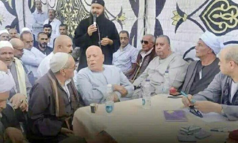 عقدت الجلسة العلنية كما شاهدها الملايين فىسرادق كبير بحضور الموظف الحكومى عمدة القرية، محكمين عرفيين والمئات من أهل القرية ، فى إهانةمباشرة للقضاء والدولة ، وسيناريو مكرر مخزىمخالف للقانون والدستور وفضيحة عالمية تناولهاالآلاف من المصريين المقيمين بالخارج ، انتحل فيهاالسرادق صفة ” المحكمة ” والمحكمين العرفيين صفة” القضاة ” وعمدة القرية ” ممثل الحكومة والجهةالتنفيذية للأحكام الصادرة ” إضافة إلى كاهنقبطي ” ممثل الأسقف الموجود فى زيارة خارجالبلاد ” وانتهت بقرارات ” أحكام ” مجحفة ظالمة فىحق الطرف القبطى المغلوب على أمره ، جاءت علىلسان أحد المحكمين عبر مكبرات الصوت ، منهاتغريم جد الشاب مليون جنيه غرامة مالية ، تهجيروالد الشاب وجده عقب بيع منزله ، دون التعرض إلىالذين قاموا بالاعتداءات على أقباط القريةوالمحرضين لها وكيفية تعويض المتضررين ، والتىسيخضع لها الجانب القبطي بالإكراه نتيجة الضغوط الواقعة عليهم وإجبارهم على قبولها .