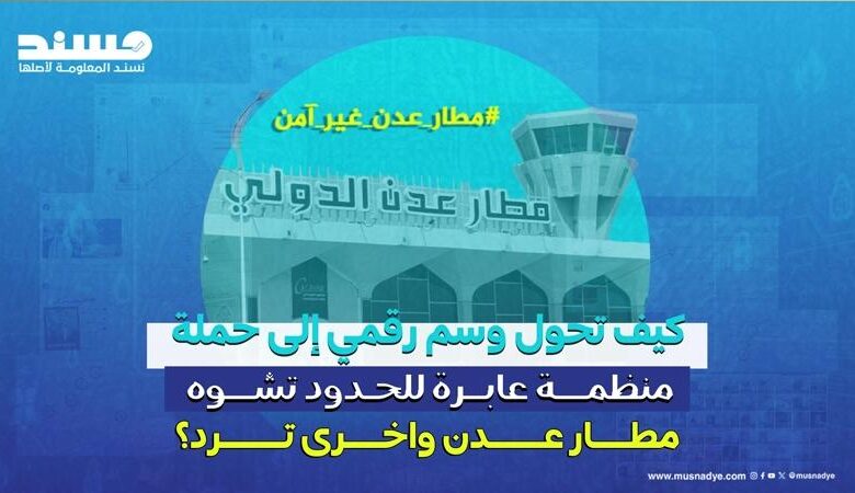 منصة التحقق اليمنية “مسند” تكشف عن حملة رقمية منسقة بتوجيه من طهران لتشويه سمعة مطار عدن