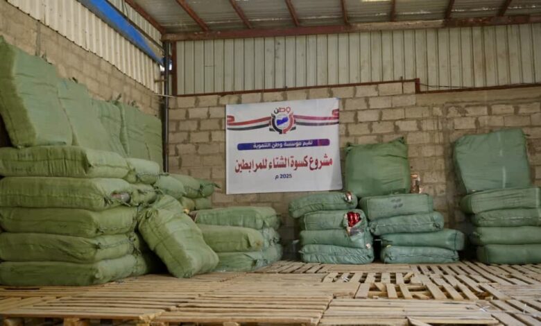 نفّذت مؤسسة وطن التنموية، ضمن جهودها المستمرة في دعم المرابطين وتعزيز صمودهم، مشروع “كسوة الشتاء” للعام السابع على التوالي، والذي شمل توزيع أكثر من 6,200 بدلة شتوية في الجبهات القتالية، إضافة إلى تخصيص كميات للجرحى من منتسبي الجيش الوطني.