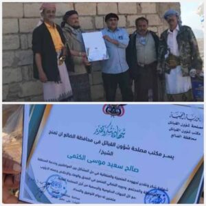 بتكليف من محافظ الضالع مكتب شؤون القبائل يكرم الشيخ صالح سعيد موسى الكتمي