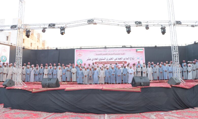 بدعم من دولة الكويت… مؤسسة كويت الخير للتنمية تزف 400 عريس وعروس بساحل حضرموت