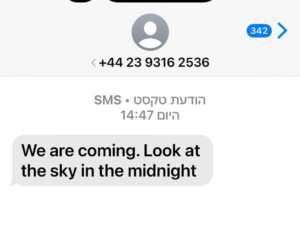 وفي الرسالة الأولى التي تلقاها آلاف الإسرائيليين، كتبت الجهة التي أرسلتها: “نحن قادمون، انظروا إلى السماء عند منتصف الليل”.
