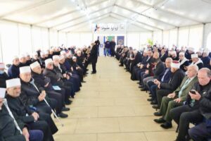 وتطرّق سماحتُه خلال خطابه إلى أوضاع أبناء طائفة المُوحِّدين الدُّروز في السُّويداء، الّذين يُعايشون معركة وجوديّة مصيريّة في ظلّ محاولات طمس هويّتهم ومحو خصوصيّاتهم، على غرار ما يواجهه المسيحيّون والأكراد والعلويّون وفئات أُخرى من أبناء الشّعب السُّوريّ، وسط صمتٍ عالميٍّ مُخجل.