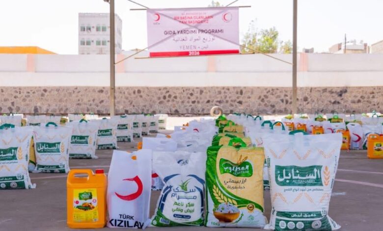 الهلال الأحمر التركيً بالتنسيق مع الهلال الأحمر اليمني والسلطات المحلية بالمحافظات المحررة….. يدشن توزيع (500) سلة غذائية للأسر الاكثر احتياجا و(1000) وجبة افطار صائم للمعاقين والمكفوفين والفقراء والأيتام والنازحين وذوي الاحتياجات الخاصة