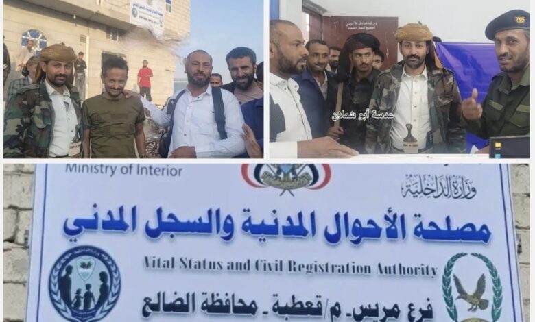 مدير أمن شرطة الضالع العميد أحمد قايد والعقيد أحمد المنصوب يدشنان البطاقة الذكية ويفتحان الأحوال المدنية بمريس