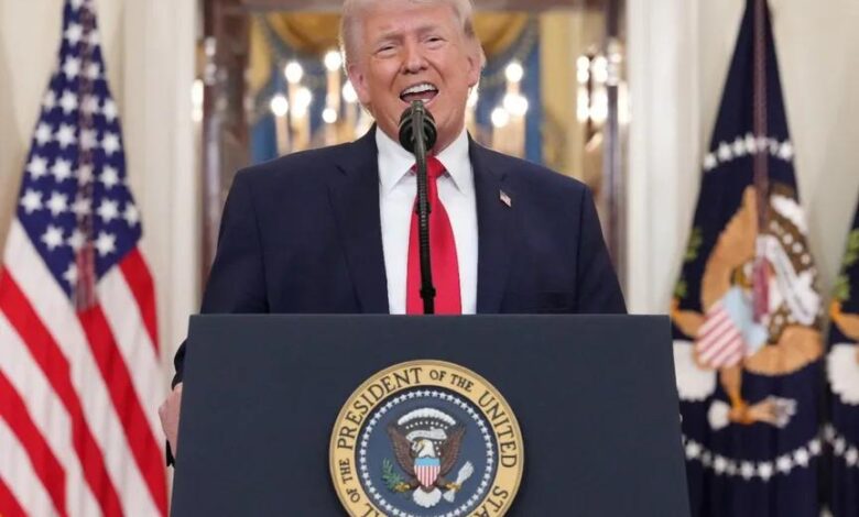 الرئيس الأميركي دونالد ترمب يلقي خطاباً بشأن حرب إيران في البيت الأبيض. 1 أبريل 2026 – REUTERS