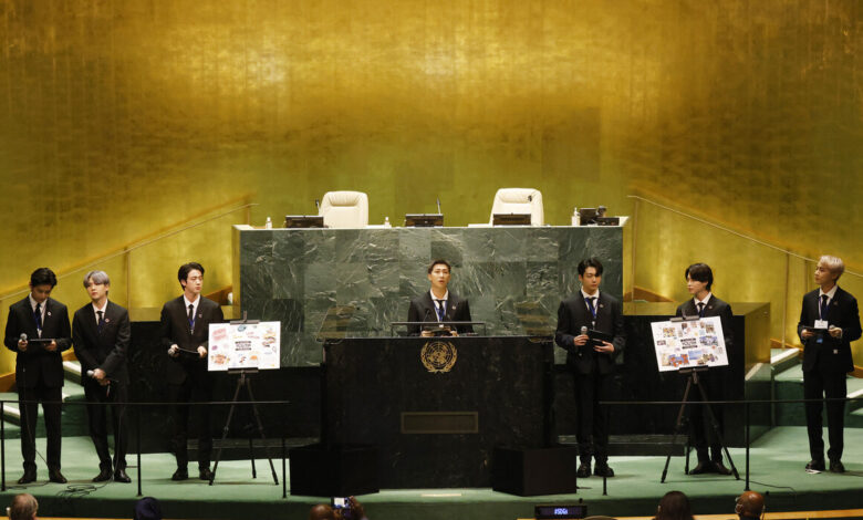 نجوم فرقة BTS الكورية في الأمم المتحدة