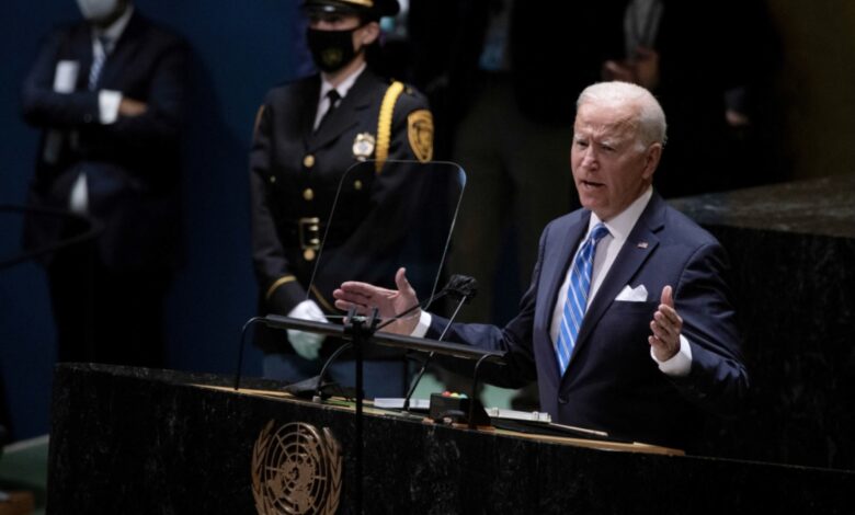 وفي خطاب شامل أمام الدورة الـ76 للجمعية العامة للأمم المتحدة، المنعقدة في نيويورك، حدد بايدن توجهات السياسة الأميركية في الفترة المقبلة، مشيرا إلى أننا “نلتقي في لحظة مليئة بالأمل والفرص”، رغم خسارة الكثير بسبب جائحة كورونا المدمرة.