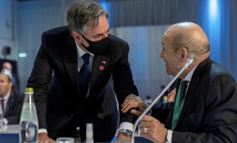 كشفت مسؤولة أميركية، الأربعاء، أن وزير خارجية الولايات المتحدة، أنتوني بلينكن، ونظيره الفرنسي، جان-إيف لودريان، سيعقدان اجتماعا ثنائيا في الأمم المتحدة، الخميس، غداة البيان المشترك الذي أصدره الرئيسان، جو بايدن، وإيمانويل ماكرون، لإنهاء الأزمة الناشبة بين بلديهما.