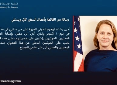 السفارة الأمريكية في اليمن تدين “الهجوم الصاروخي الحوثي المروع على حي سكني في مارب”
