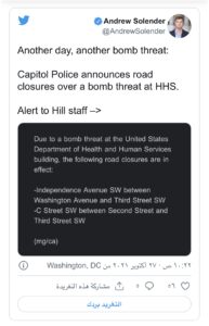 إخلاء مقر وزارة الصحة الأمريكية بسبب تهديد بوقوع تفجير