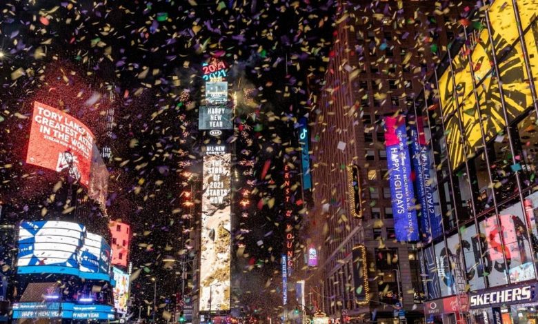 لكن جائحة كوفيد-19 حالت في نهاية السنة الماضية دون تجمّع الحشود الغفيرة كالمعتاد في تايمز سكوير إذ احتفلت المدينة بحلول العام الجديد بإنزال الكرة البلورية التقليدية وإطلاق القصاصات الورقية في الهواء في ساحة خلت بالكامل إلا من جمع صغير من “العمال الأساسيين” وعائلاتهم، وذلك تكريماً لهم على جهودهم خلال الأزمة الصحية.