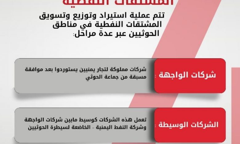 كشفت تقارير مدعمة بالوثائق عن أن نافذين في جماعة الحوثيين ، أسسوا شركات من الباطن بهدف استيراد وبيع وتوزيع المشتقات النفطية في المناطق الخاضعة لسيطرة الحوثيين بالتزامن مع سيطرتها على سوق الوقود.