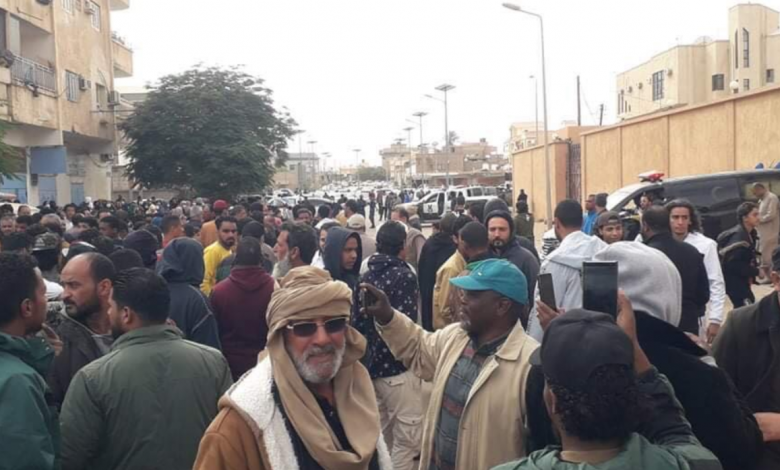 وينتظر المئات من أنصار نجل القذافي سيف الإسلام أمام مبنى المحكمة في هذه المدينة والواقعة جنوب غرب البلاد، وكانت هذه الحشود قد تجمعت منذ يومين في المكان للوقوف ضد ما وصفت بمحاولات من قبل مسلحين لمنع اكتمال نصاب القضاة في محاولة لإعاقة ترشح سيف الإسلام القذافي للانتخابات الرئاسية المقررة يوم 24 ديسمبر.