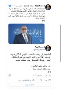 وكان رئيس تكتل “إحياء ليبيا”، عارف النايض، والمترشح للانتخابات الرئاسية الليبية قد غرد على حسابه في موقع “تويتر” داعيا إلى أن ينصف “القضاء الليبي الدكتور سيف الإسلام القذافي بالنظر الموضوعي في استئنافه أيضا، رغم كل التشويش على محكمة سبها”.