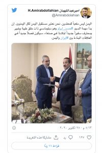 وفي 18 أكتوبر 2020 عينت إيران سفيرا لها في صنعاء الخاضعة لسيطرة جماعة الحوثي، واعتبرت الحكومة اليمنية هذه الخطوة “غير قانونية وتدخلا سافرا”.