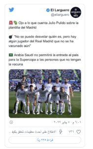 كأس السوبر.. لاعب مدريدي غير ملقّح والسعودية لا تسمح بدخول غير المحصنين