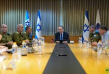 وزير الدفاع الإسرائيلي يسرائيل كاتس (وسط) خلال تقييم أمني عقده في مقر وزارة الدفاع في…