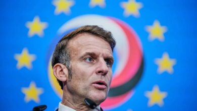 الرئيس الفرنسي إيمانويل ماكرون خلال مؤتمر صحافي في قمة السيادة الرقمية الأوروبية في برلين ألمانيا…