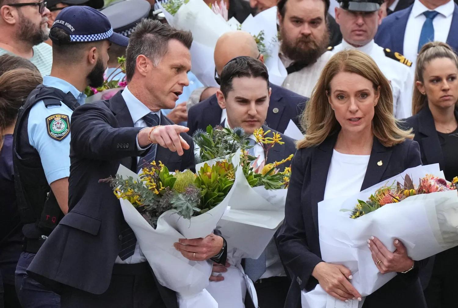 رئيس وزراء ولاية نيو ساوث ويلز كريس مينز (في الوسط) وكيلي سلون (على اليمين) زعيمة…