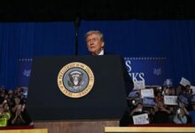 الرئيس الأميركي دونالد ترمب يتحدث إلى الصحافيين عند مغادرته قاعدة أندروز الجوية في ولاية ماريلاند…
