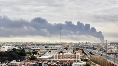 دخان يتصاعد من مطار الكويت الدولي بعد غارة جوية بطائرة مسيرة استهدفت مخزنا للوقود في…